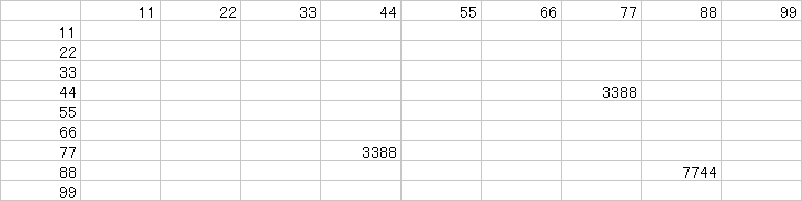これを81個分コピーすると,おっ,綺麗にぞろ目が表示されたぞ。