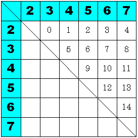 表の左下半分は右上の対称になるので右上の部分だけを虱潰す以下のようなコードになる。